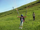 午前中に基本練習、午後からスキー場の斜面(20M〜70M)でフライト!