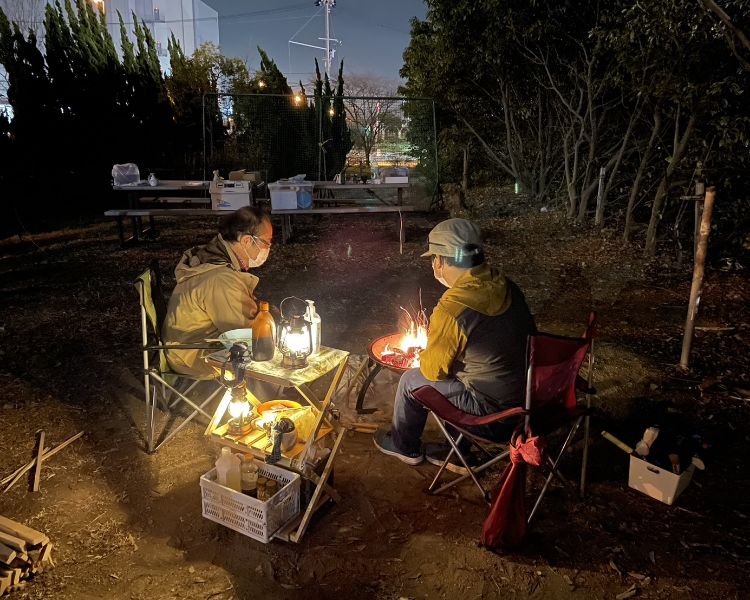 火おこし体験、簡易トイレの凝固剤体験、テント設営、ファーストエイド、非常用持ち出し袋の検討など、災害時に役立つ実践的な内容を取り入れました。